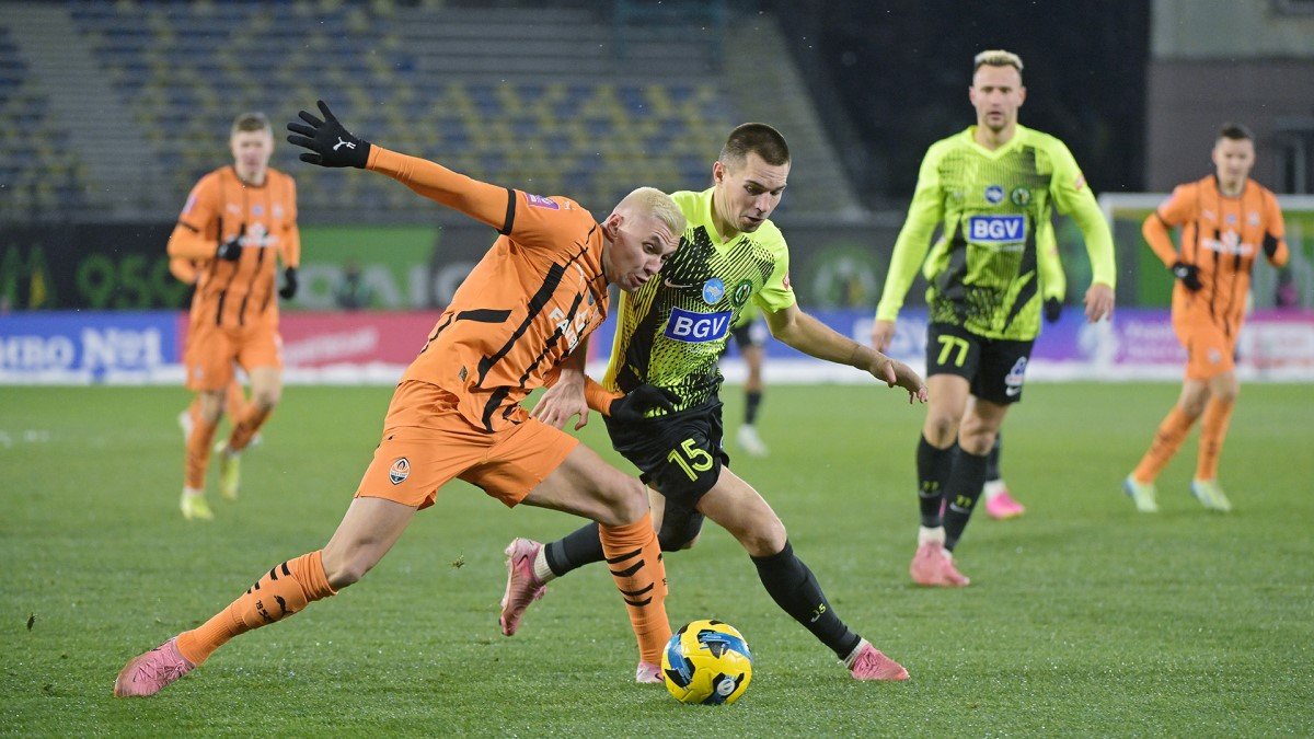 А після 30-ї хвилини "вовки" провели кілька гострих атак. Так, Гуцуляк отримав м'яч у карному, накрутив там одразу трьох захисників, але з його ударом впорався Різник. А через 5 хвилин у штрафному Шахтаря стався суцільний хаос. Михайліченко навісив з кутового, Кушніренко підхопив м'яч. У боротьбі м'яч відлетів до Педро Енріке, який, вибиваючи м'яч, влучив у голову Матіча. А найкращий момент першого тайму мав Богдан Кушніренко. Лукас Тейлор у штрафному Шахтаря виборов м'яч та скинув на Кушніренка, а той одразу пробив з лету – поперечка врятувала Різника від пропущеного гола.