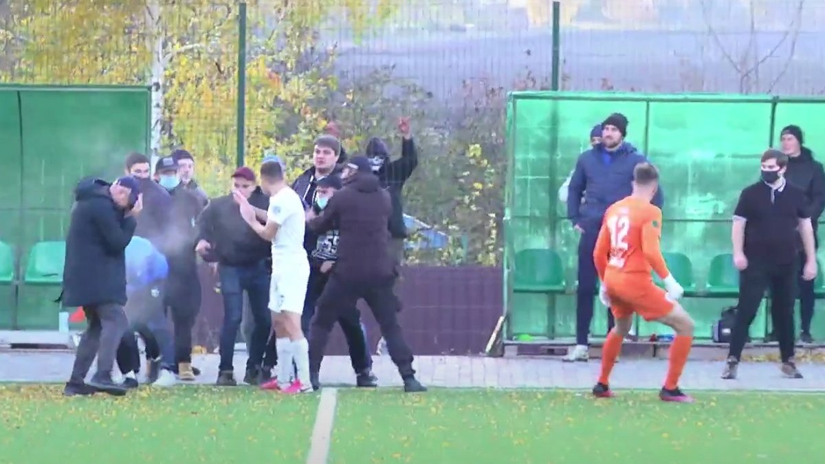 Після третього гола у ворота Сум на футбольному полі з'явились прихильники господарів і влаштували безлад, через що розпочалась бійка.