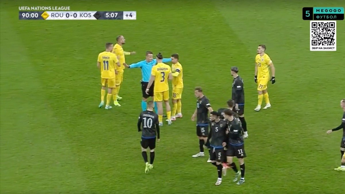 Матч 5-го туру Ліги націй між Румунією та Косовом завершився скандалом. Основний час гри закінчився з рахунком 0:0, але зустріч не була дограна через інцидент на останніх хвилинах. Гравці Косова залишили поле після появи сербського прапора та вигуків на трибунах, які зневажливо ставилися до їхньої країни, зокрема звучало гасло "Косово – це Сербія".