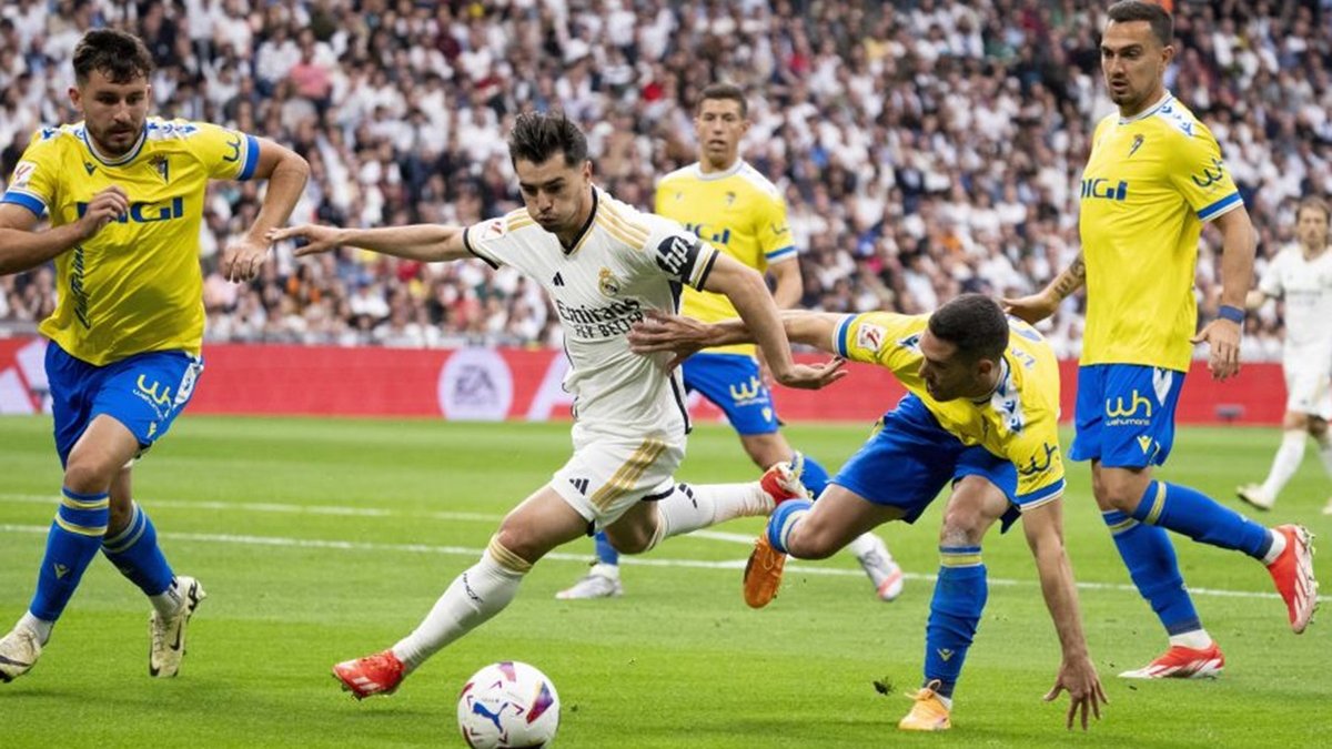 "Вершкові" заволоділи ініціативою одразу після стартового свистка. Всі спроби мадридців створити щось небезпечне біля воріт Кадіса провалювалися. На 11 хвилині Едер Мілітао пробив з-за меж штрафного майданчика, але Ледесма впорався з м'ячем. Гості гарний момент створили на 32 хвилині і це перший раз, коли Тібо Куртуа довелося вступати в гру. Досить не погано діяв Арда Ґюлер, який постійно підключався, був перший на підборах і намагався створювати загрозу. Під кінець першого тайму Реал притиснув Кадіс до своїх воріт. Утім, досягти цілі не вдалося.