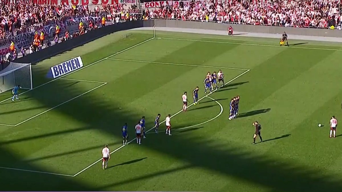 Рівер Плейт у середині першого тайму вийшов уперед завдяки шедевру Франко Мастантуоно. 17-річний півзахисник штрафним ударом з 30 метрів поцілив точнісінько у дев'ятку. Хлопця вже давно пов'язують з топ-клубами Європи.