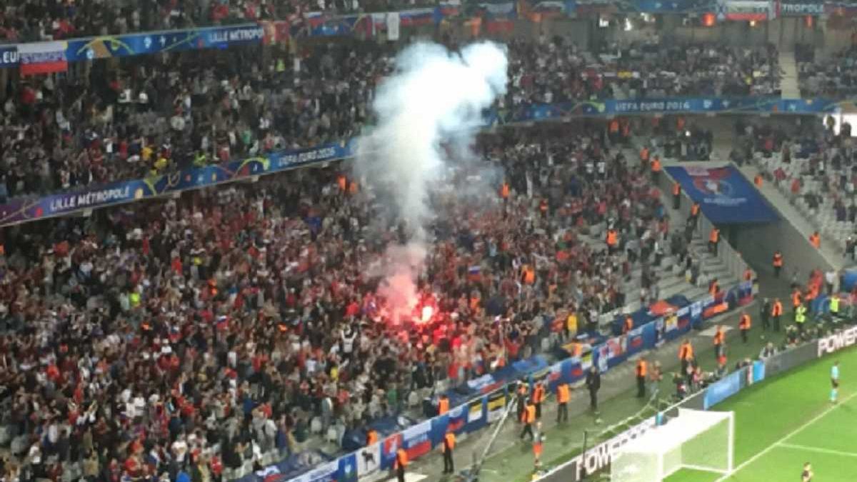 Вболівальники активно святкували гол Дениса Глушакова наприкінці матчу та запалили фаєри на своєму секторі. УЄФА вже попередив збірну Росії умовною дискваліфікацією та штрафом, тепер команда може покинути турнір вже найближчим часом через нові витівки своїх прихильників, повідомляє 101greatgoals.