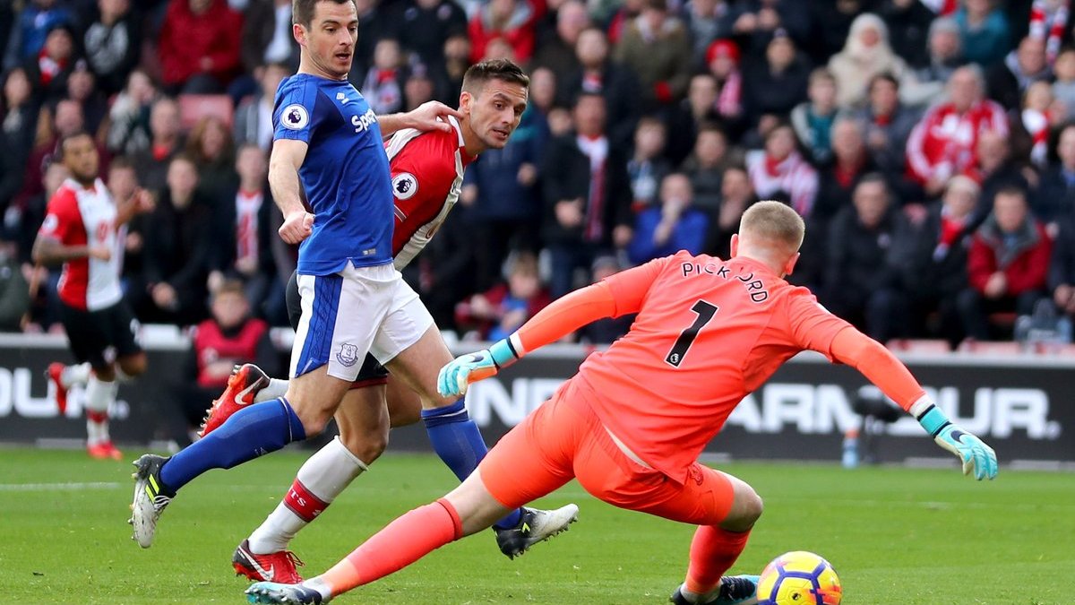 Команди розпочали матч з боротьби за ініціативу в матчі, по черзі створюючи моменти біля воріт суперника. Вдаліше діяв Саутгемптон, який відкрив рахунок в матчі, Тадіч точно пробив у нижній кут воріт. Евертон під занавіс тайму рахунок зрівняв, Сігурдсон чудовим дальнім ударом вразив ворота Форстера.