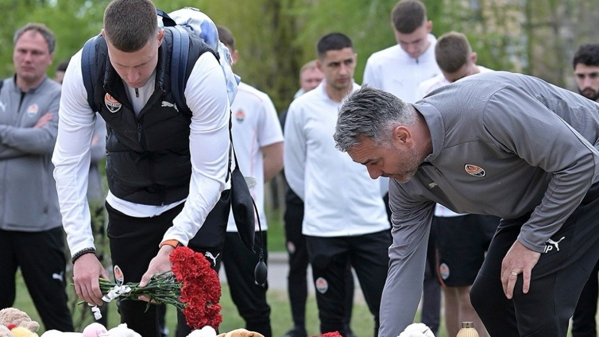 Представники донецького клубу – гравці, тренери та керівництво – вирушили до місця, де російська ракета влучила в житловий район 4 квітня. Там вони вшанували памʼять загиблих, серед яких було девʼятеро дітей. Учасники делегації поклали квіти та вшанували загиблих хвилиною мовчання.