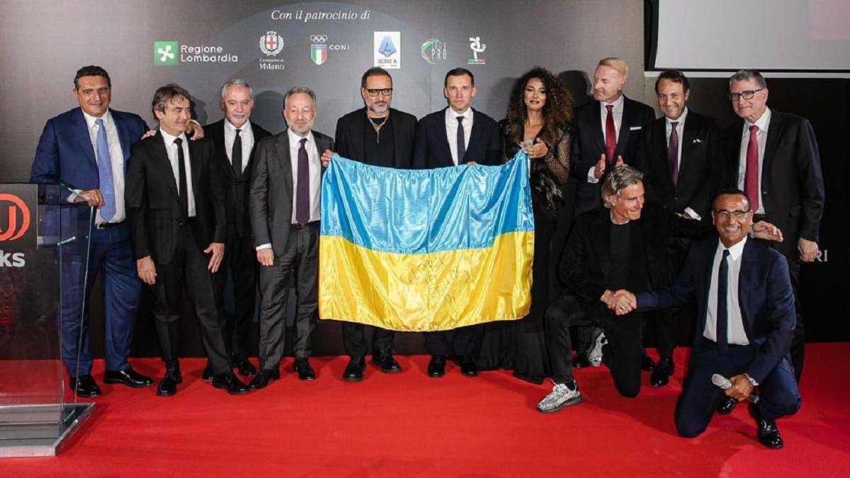 Шевченко привіз на церемонію прапор із підписом Президента України Володимира Зеленського. Синьо-жовтий стяг продали на аукціоні за 110 тисяч євро, хоча початкова вартість складала лише 5 тисяч, повідомляє Ukraine NOW.