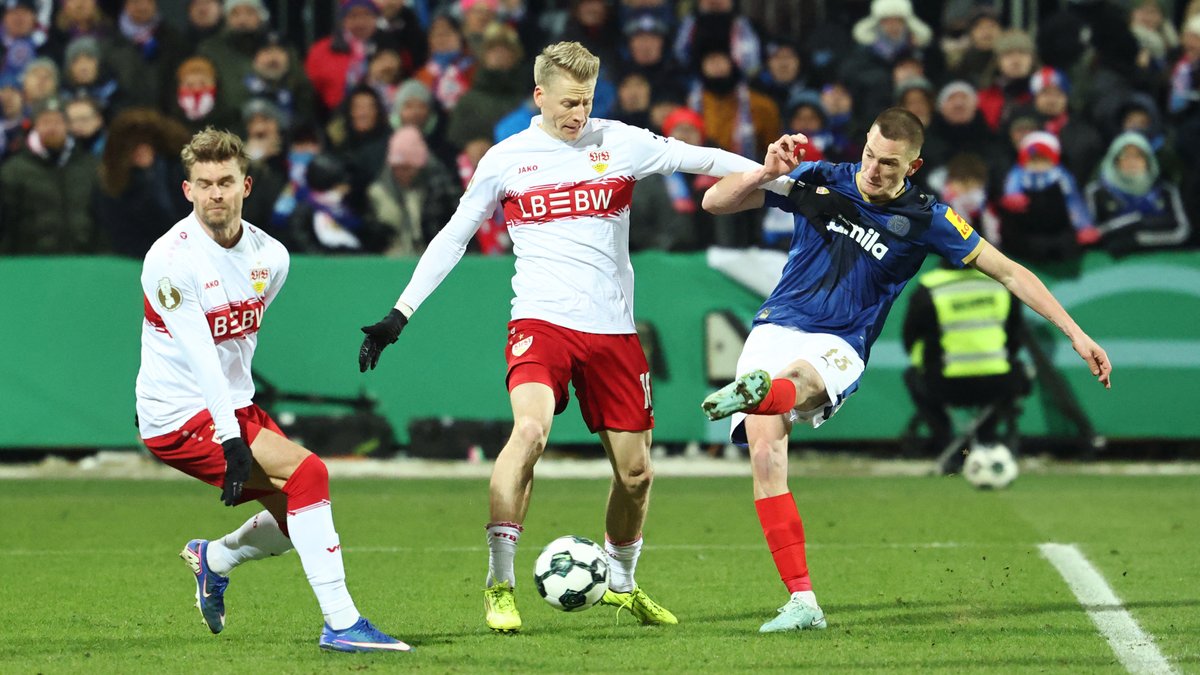На 89-й хвилині Штутгарт майже гарантував собі перемогу, забивши другий гол. Ундав віддав класний витончений пас під набігання Фюріха, а той на швидкості втік від захисника та ефектно обіграв воротаря. На цьому "шваби" не зупинились та забили втретє. Каразора вивели на удар у штрафному, хавбек заметушився, впав, але таки заштовхав круглого у ворота. Штутгарт розгромив Хольштайн та вийшов у півфінал Кубка Німеччини.