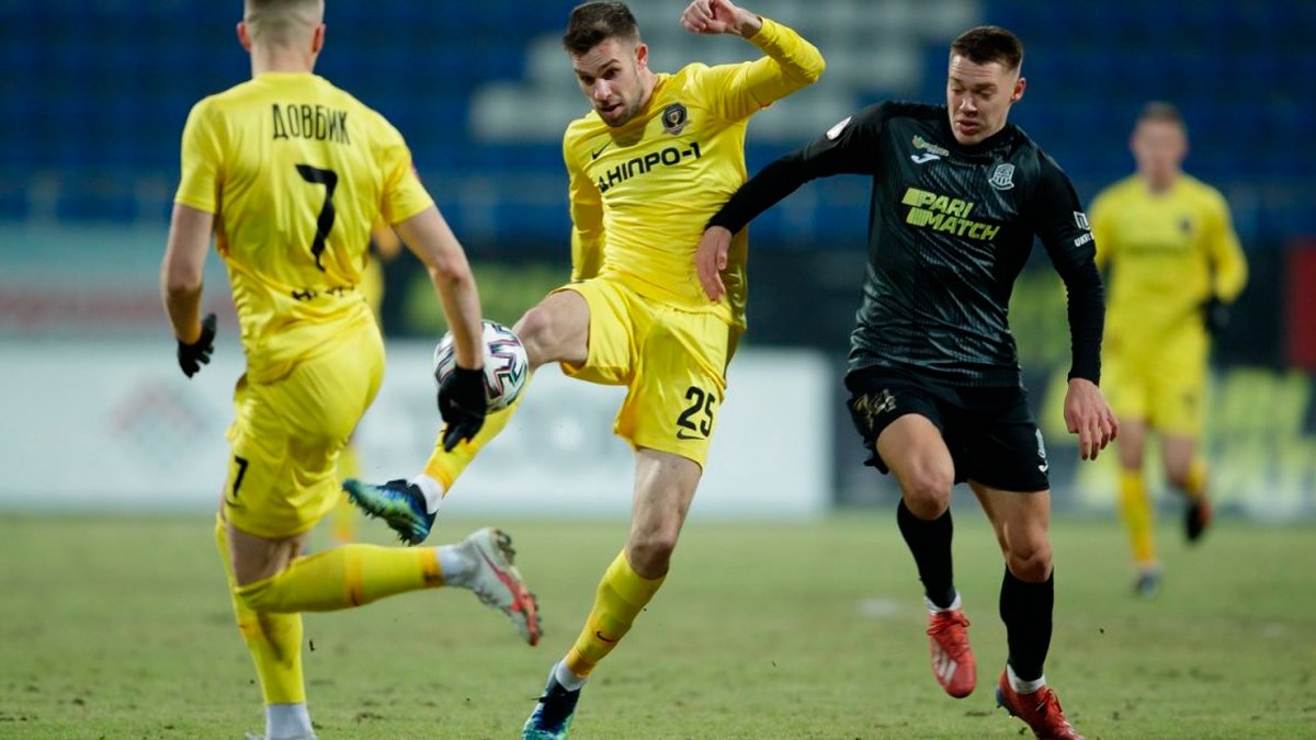 СК Дніпро-1 до кінця першого тайму встиг провести дальній удар у виконанні Когута, однак він виявився занадто неточним. Зрештою, на перерву команди відправились за нулів на табло.