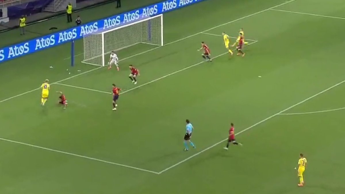 Перший тайм у виконанні обох команд міг навернути навіть давно розчарованих у футболі людей. Після кількох пробних забігів Мудрик, який перебуває на кілька рівнів вище за інших учасників Євро, подарував гол Бондаренку. А вже через чотири хвилини спрацював геній Абеля. Наставнику збірної Іспанії навіть довелося змінювати схему (з 4-3-3 на 4-2-3-1), щоб мінімізувати фактор Мудрика. Бланко опікав нестримного вінгера Челсі разом з Віктором Гомесом. І це спрацювало".