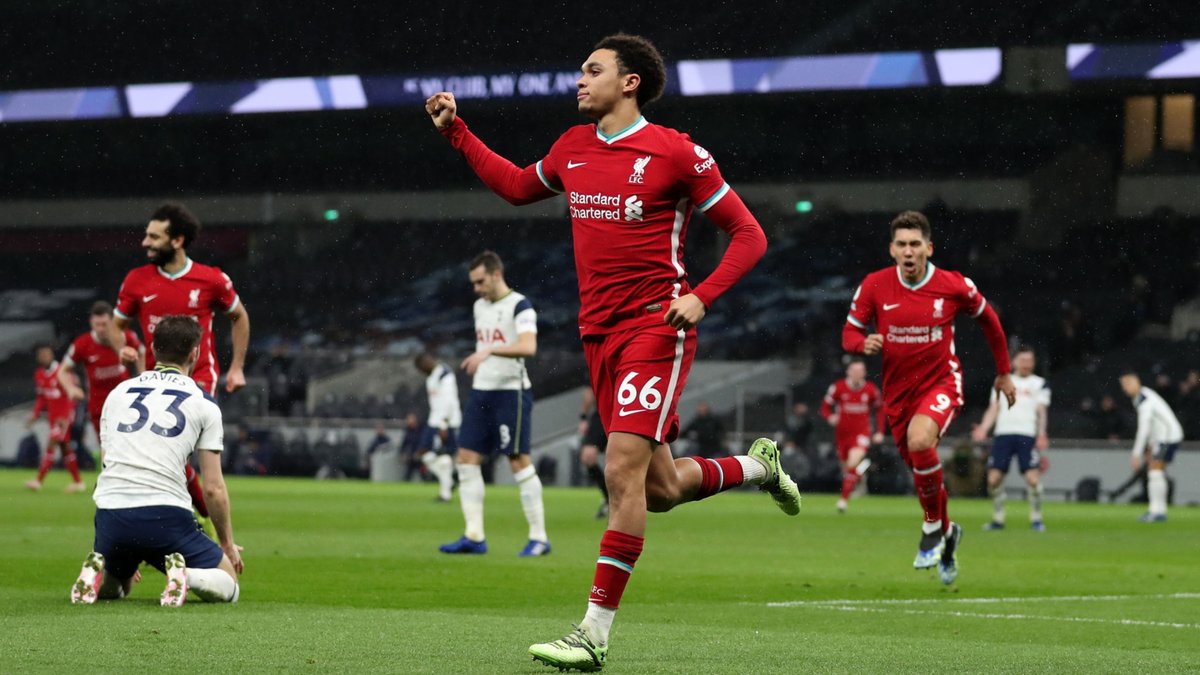 У поєдинку з МЮ в Кубку було помітно, що фулбек повертається у нормальну форму, а з Тоттенхемом вже можна впевнено говорити – Александер-Арнольд зіграв прекрасно. Він став другим після Мане за залученістю до атак з ударами та пасами під них (допоміг команді награти 1,87 очікуваних голів) і лідером за залученістю до атак без них (допоміг на 1,44 xG). Саме Трент запускав діагональ на Мане перед дебютним гольовим моментом і саме він запускав Салаха віч-на-віч (Льоріс випередив Мо) на 39-й хвилині.