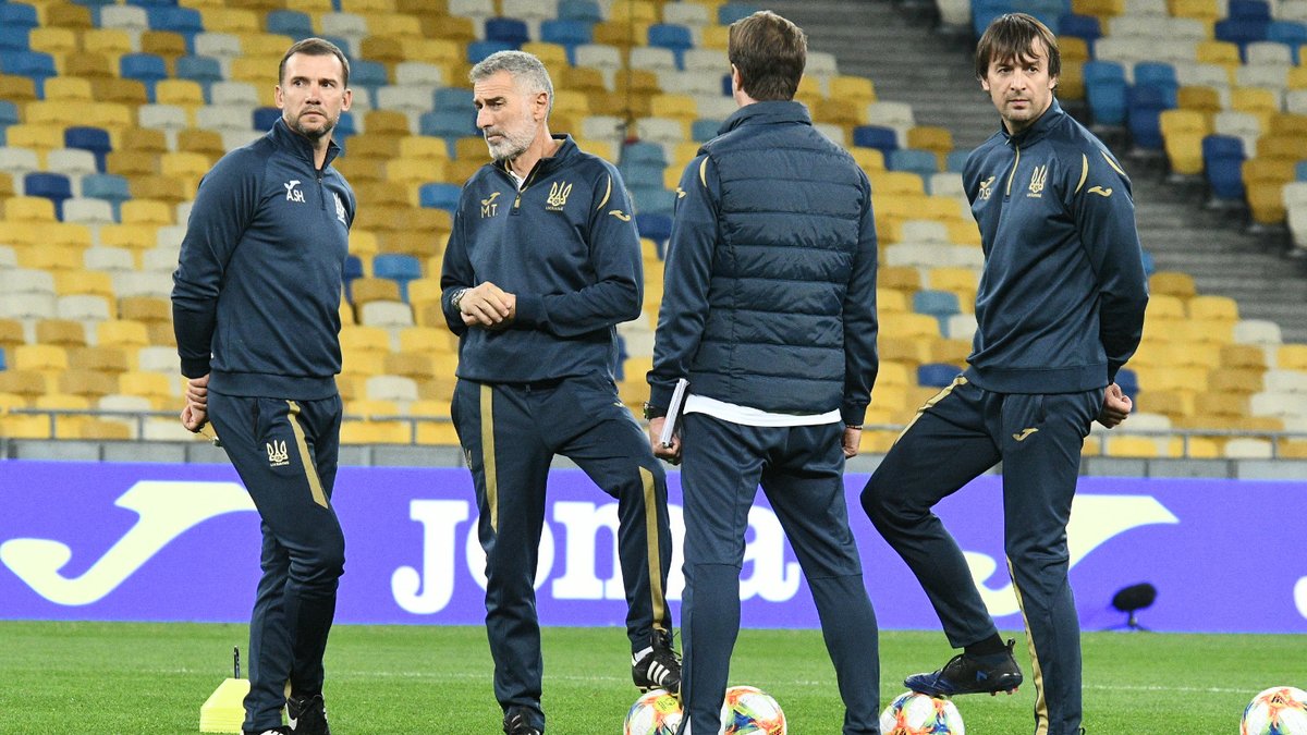 Гравці української збірної виглядали вкрай зосередженими і не дозволяли собі проявляти зайві емоції на камеру. За всім цим уважно стежив тренерський штаб на чолі з Андрієм Шевченком. Щоправда, керманич "синьо-жовтих" знайшов вільну хвилину, щоб зробити спільну фотографію зі своїми помічниками.