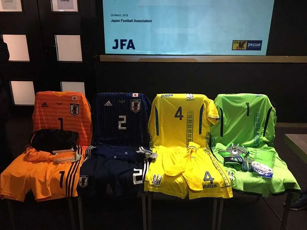 Збірна України вийде в домашньому комплекті форми на товариський матч проти збірної Японії. Японці гратимуть у синьому комплекті.