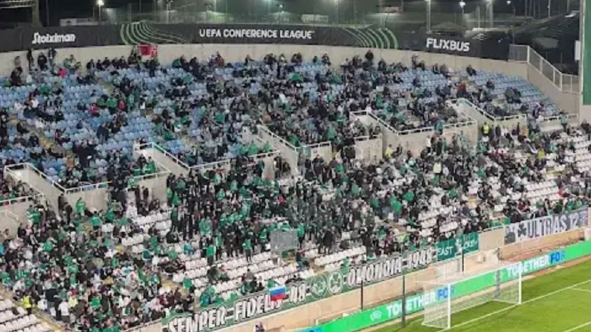 Сьогодні, 27 листопада, Омонія приймає вдома київське Динамо в рамках четвертого туру Ліги конференцій. Під час гри ультрас кіпріотів відзначилися ганебним вчинком. Вони вивісили на стадіоні прапори Росії та СРСР, повідомляє ВЗБІРНА.