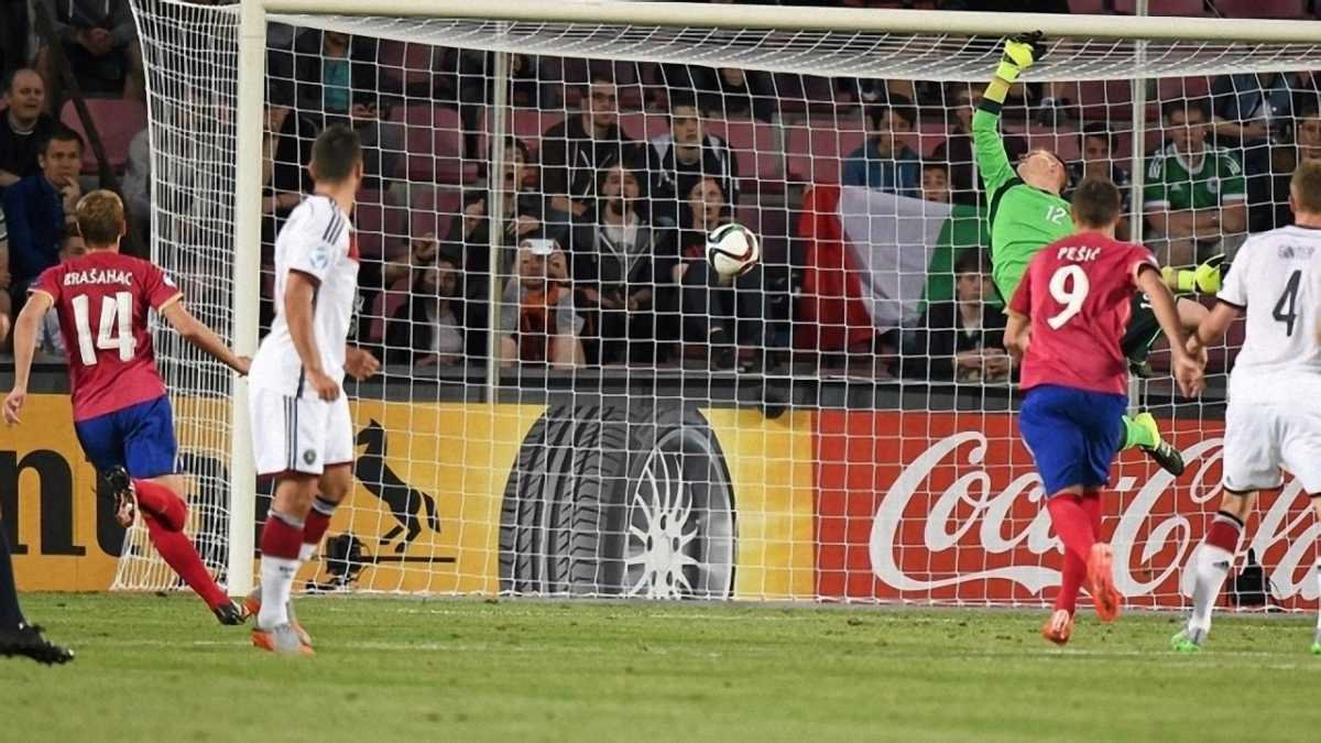 Німці пропустили швидкий гол. Атакувальний півзахисник англійського "Саутгемптона" Філіп Джурічіч розібрався з усіма захисниками, прокинувши одному із німців м'яч поміж ніг, і перехитрив голкіпера "Барси" Марк-Андре тер Штегена. Інший представник АПЛ Емре Джан не змирився з таким ходом подій і встановив паритет уже на 17-й хвилині. Центральний півзахисник "Ліверпуля" фінтом посадив на газон опонента і елегантним ударом з-за меж карного відправив снаряд у дальній кут. Зрештою, Німеччина, яка майже 25 хвилин провела у меншості, більше не пропустила, але й не забила.