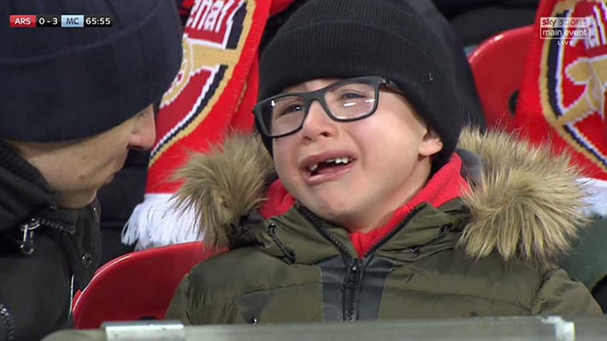 На 66-й хвилині, після третього гола Манчестер Сіті, оператор вихопив з натовпу зовсім юного вболівальника Арсенала. На хлопчика було боляче дивитися – він плакав так, що не поспівчувати йому неможливо.
