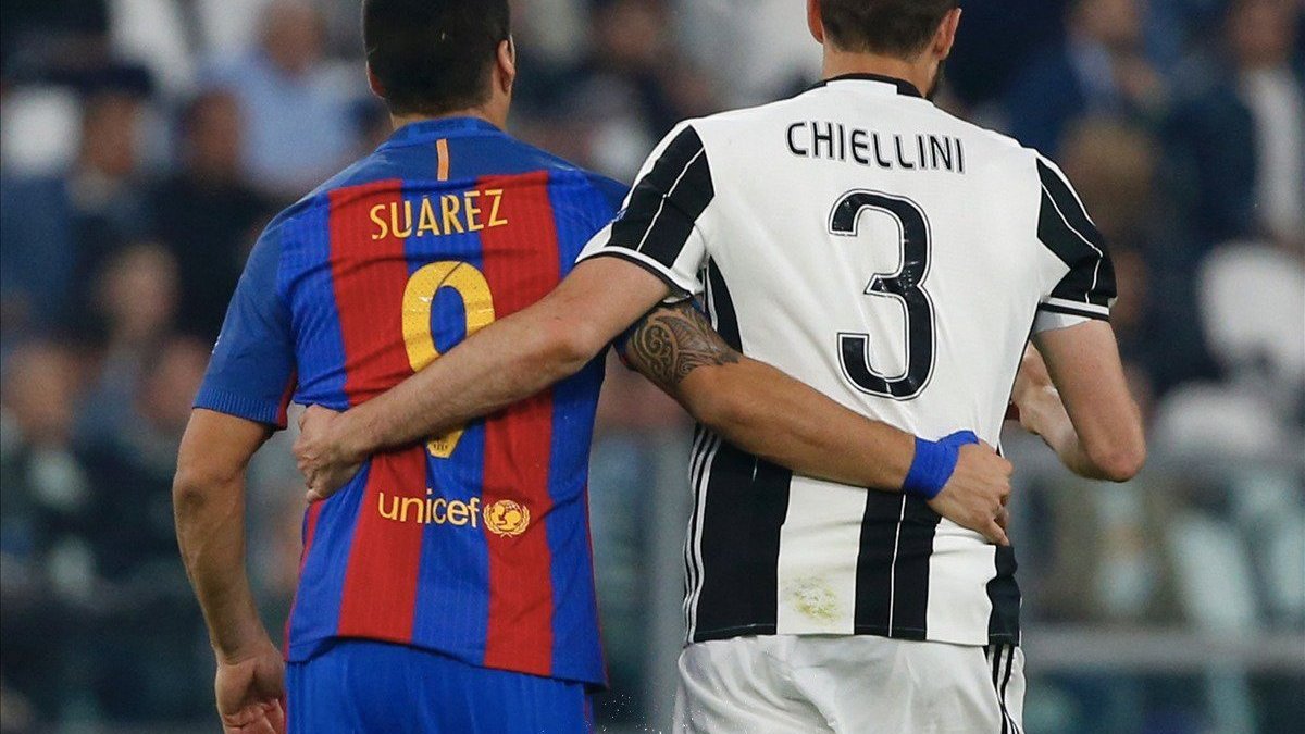 Суарес і К'єлліні тепло привітались під час ігрового моменту. Поведінка Луїса була зразковою, хоча його "Барселона" і програвала "Ювентусу" з розгромним рахунком.