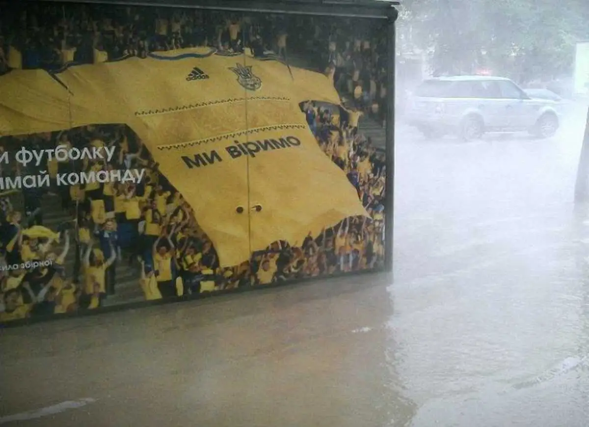 З-під асфальту, який луснув, прорвалася гаряча вода. Цікаво, що саме тут проводився капітальний ремонт доріг та реставрація будівель до початку Євро-2012.