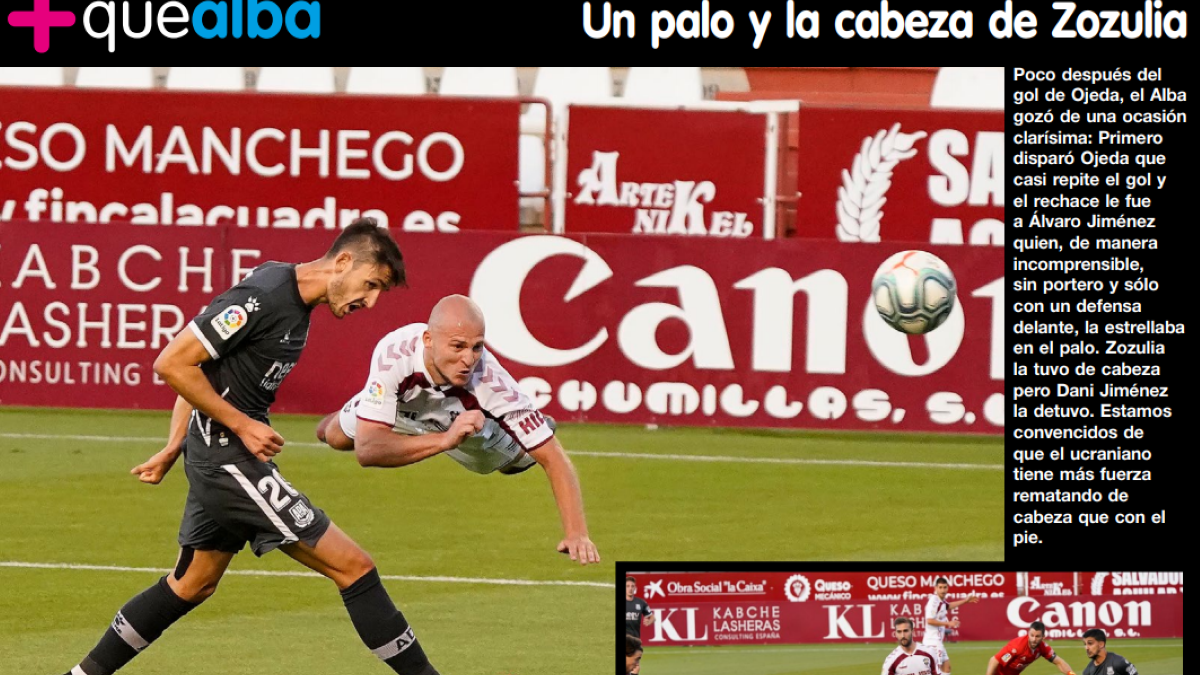 Зозуля першим з гравців Альбасете влучив у площину воріт – на 54-й замкнув націлену подачу з правого флангу прямо в руки голкіперу. А ще через 3 хвилин Роман класно виграв верхову боротьбу, вивівши Охеду у штрафний гостей після довгої передачі Надаля. До 3-х голів додав українець другий асист у сезоні! Як не забив Альбасете відразу після цього? Удар, сейв голкіпера і влучання у стійку вже порожніх воріт. Міг Зозуля і сам забити. Вихованець Динамо блискуче зіграв на другому поверсі – Дані Хіменес витягнув із самої лінії воріт. Ромарес влетів у суперника, влучивши... заднім місцем в обличчя. Вкрай дивна друга жовта, Алькоркон залишився в меншості на останні хвилин 10.