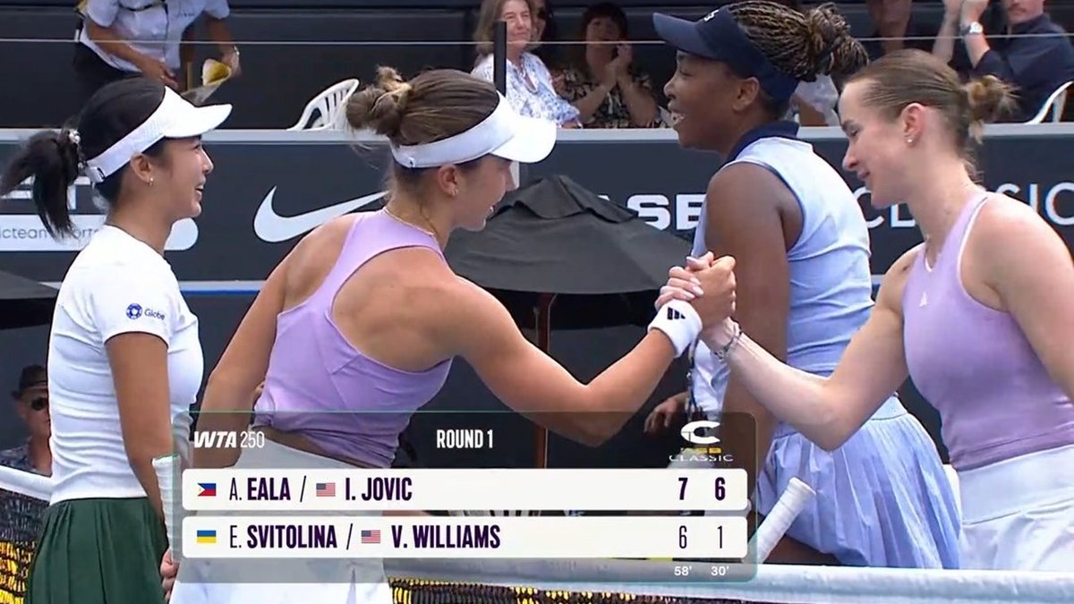Александра Еала / Іва Йовіч – Еліна Світоліна / Вінус Вільямс – 2:0 (7:6 (9:7), 6:1)