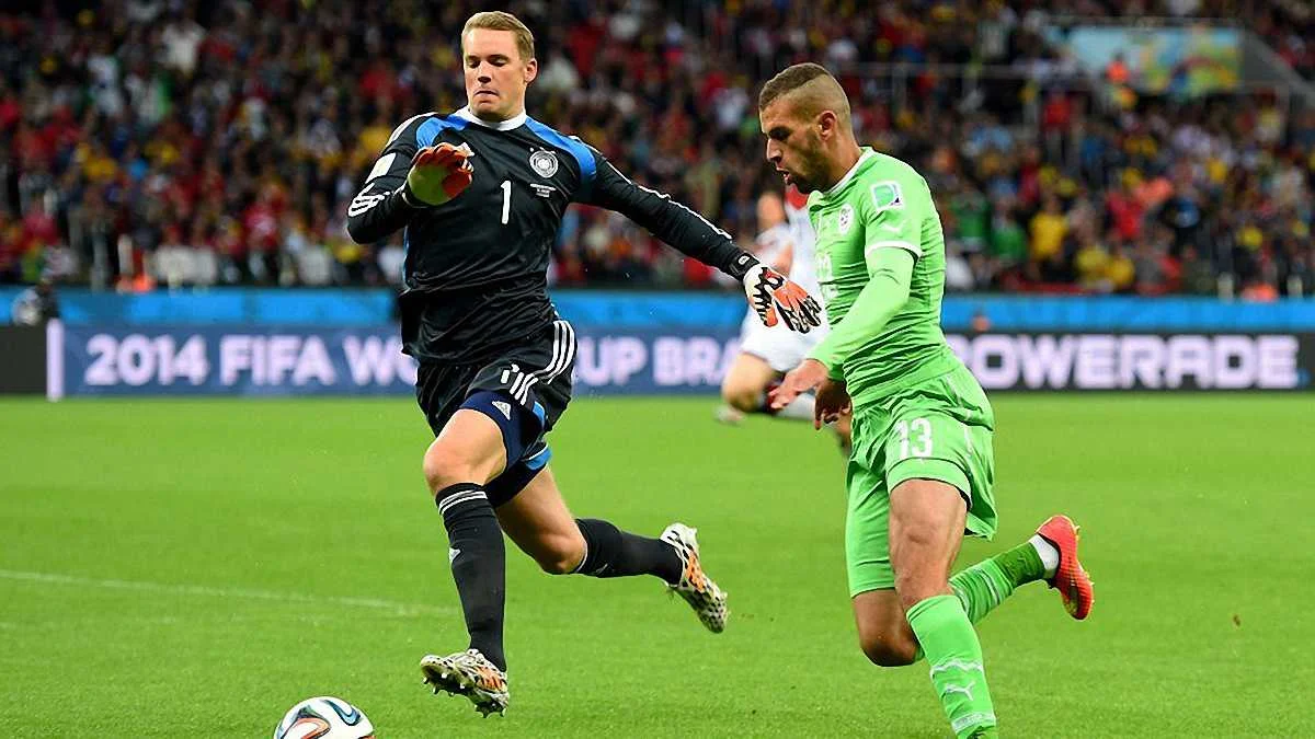 Алжир (добре пам'ятаючи про неприємний інцидент на ЧС-1982, коли Німеччина та Австрія, зігравши в потрібний для обох збірних результат, що тоді не дозволив африканцям пройти далі з групи) вийшов на матч проти німців достатньо вмотивованим, і у першому таймі переграв визнаних фаворитів, однак без голів. У другій половині "Bundesmannschaft" зібралися, і показали хто господар на полі, хоч і номінальний. Однак забитими м'ячами хлопці Йоахіма Льова також не відзначилися - на заваді став воротар африканців Раїс Мболі, який відбивав все що летіло у ворота.