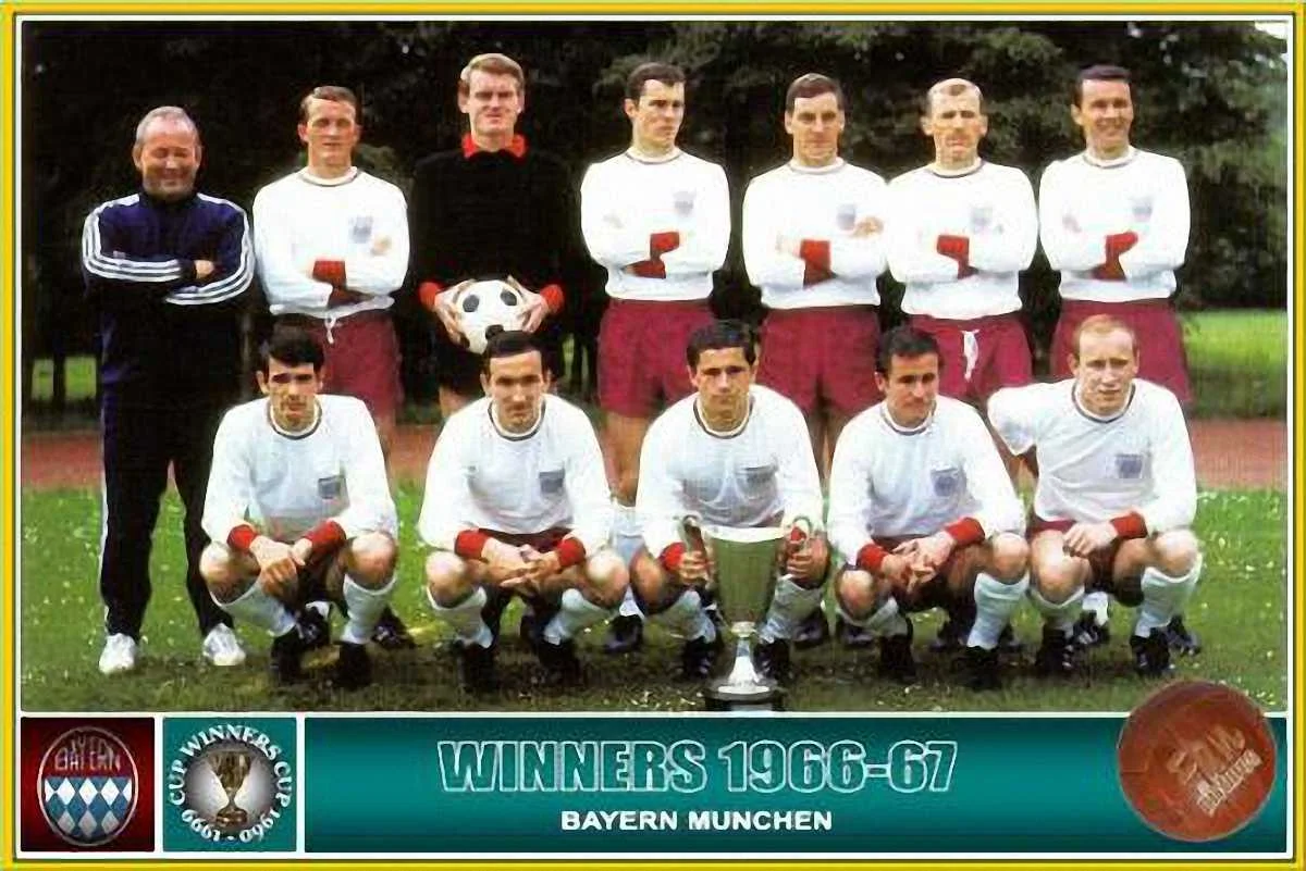 На цьому фото – «Баварія», володар Кубка Кубків 1966/67. Зеп Маєр, Франк Беккенбауер, Герд Мюллер – всі на місці. Важко уявити, але ця команда могла припинити похід за трофеєм ще 1/8 фіналу, де суперником мюнхенців був скромний «Шемрок Роверс» із Ірландії. В першому матчі «Баварія», ведучи в рахунку, дозволила «зелено-білим» відігратися. Ніхто з німців не засмутився, адже попереду була ще гра в Мюнхені.