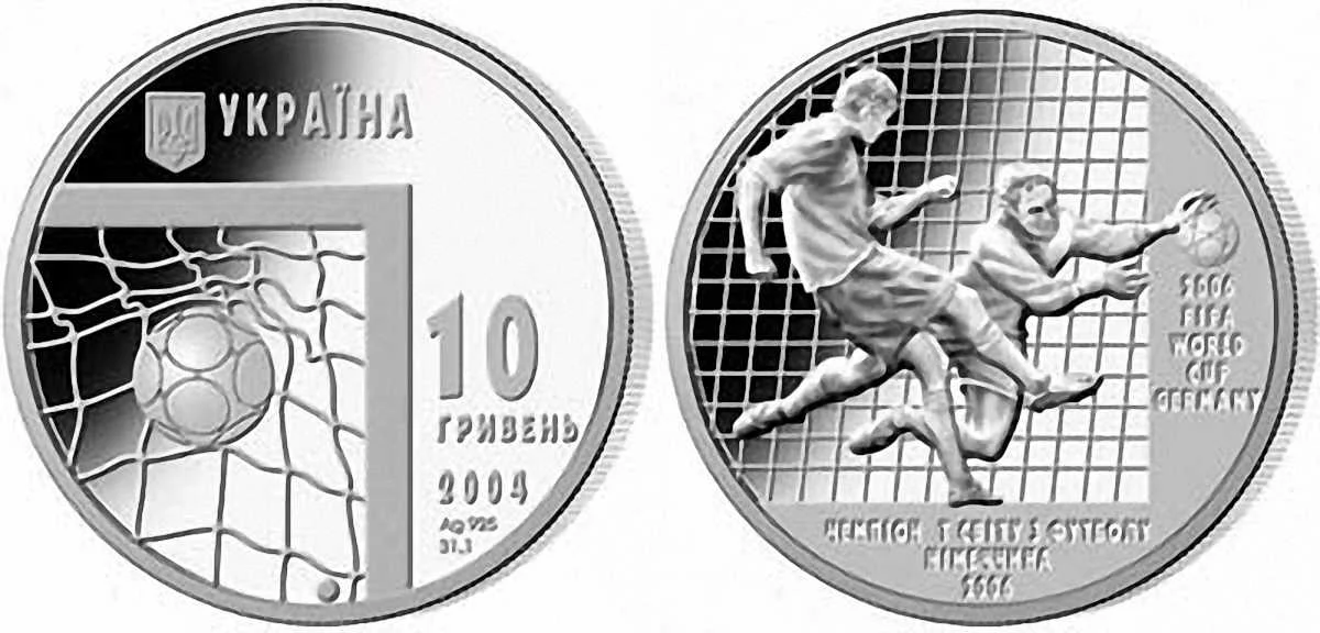 В минулому огляді ми розповідали про українську мідно-нікелеву «двушку», яку випустили до Чемпіонату світу у Німеччині. Сьогоднішня «десятка» ідентична за дизайном, але зроблена зі срібла 925 проби і має вагу 34 грами. Хочете таку? Бігом у відділення Нацбанку!