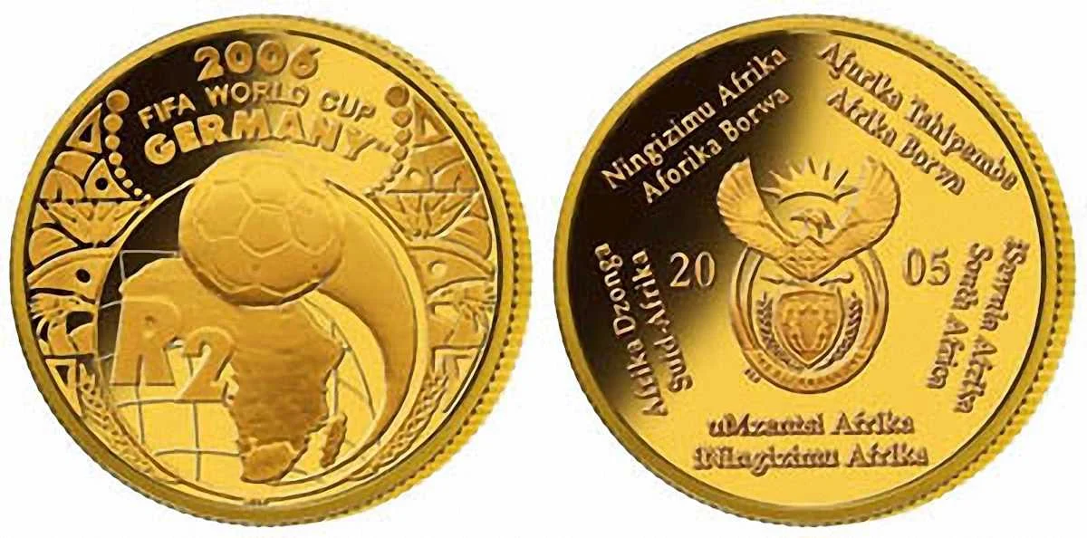 Ви тільки подивіться на них уважніше – ну чим не шедевр? Монетний двір ПАР продемонстрував симпатичне і оригінальне втілення ідеї випуску монет на футбольну тематику, в конкретному випадку - ЧС-2006. По-перше, самі монетки дуже стильні і симпатичні. По-друге, вони стануть прекрасною інвестицією, адже ціна на такі екземпляри найближчим часом точно не впаде, навіть якщо вартість золота і срібла буде звично коливатися.