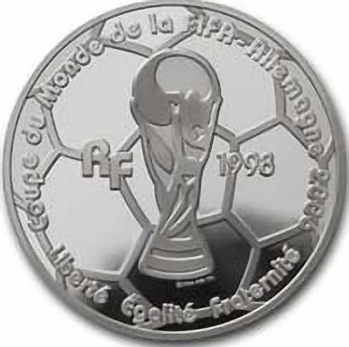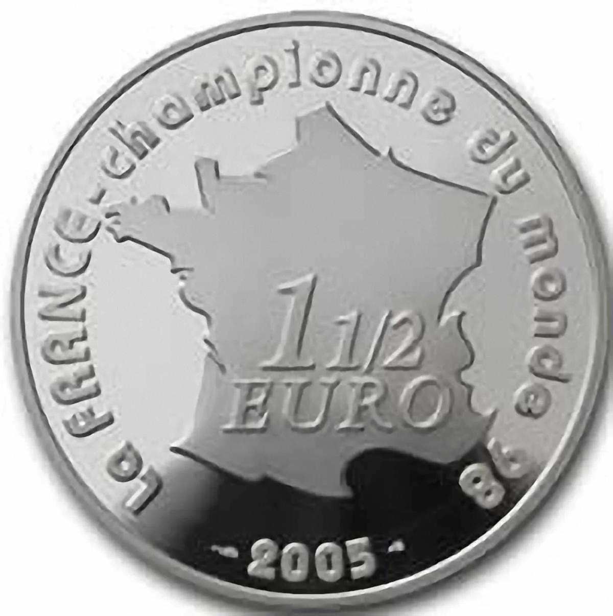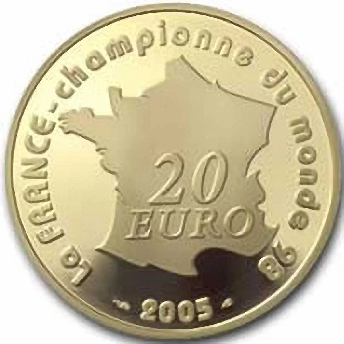 Незвичний лот із двох монет, абсолютно схожих за дизайном (зекономили на роботі художника, не інакше), але з великою відмінністю у металі (1,5 євро виготовлено зі срібла, двадцятку – із золота) і, що логічно – номіналі і колекційній вартості. Причому, французи вирішили у своїй «оригінальності» піти ще далі. Подібний фортель раніше зустрічати не доводилося: колекційні кружальця були випущені не до, а після важливого футбольного форуму (на кшталт ЧЄ або ЧС, які є найпопулярнішими серед представленої на монетах тематики). У конкретному випадку на євромонетах 2005-го року зобразили… Мундіаль далекого 1998-го. 7 років пройшло! Що ж, історія – теж добре, її теж слід знати. І хай це тричі нелогічно, але – самі монети вийшли дуже симпатичними, за що «жабоїдам» плюс.