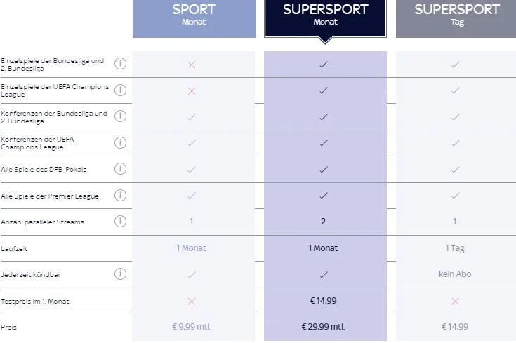 У Німеччині витрати на футбол не дуже високі, але тут додається національна специфіка. Футбольний пакет Sky коштує 30 євро/місяць – плюс 60 за активацію та 150 за ресівер, однак можна натрапити на акції, які роздають підписки зі знижками до 66%. Проблема в тому, що Sky показує не усі матчі німецьких клубів в ЛЧ і лише 266 з 306 поєдинків Бундесліги – сюди не входять понеділок, п'ятниця і матчі, які починаються пізніше 18:00. Також тут немає Ліги Європи.