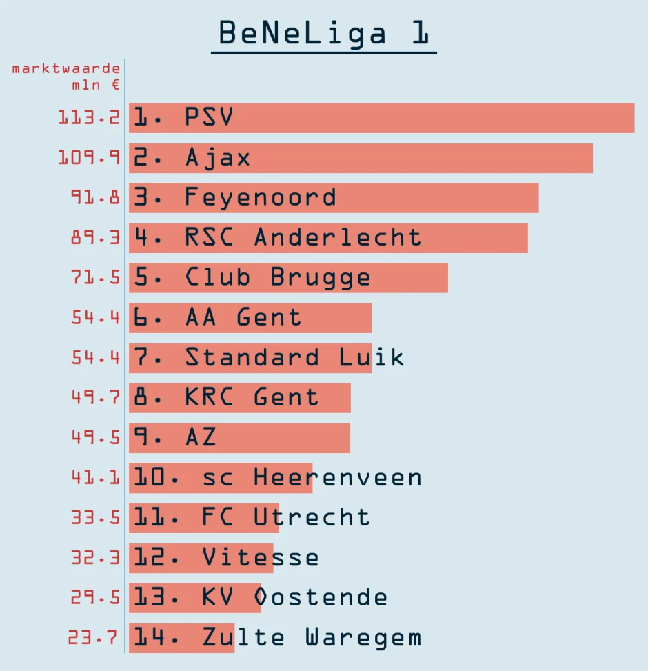 Можливий варіант БеНеліги (ліворуч – вартість команд у млн євро)