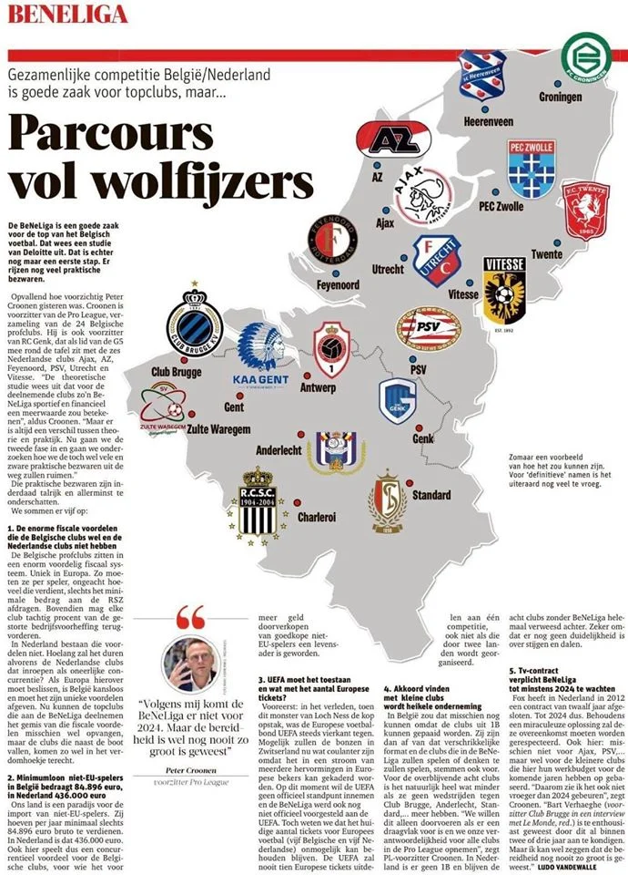 На початку 2010-х років Валерій Газзаєв носився з ідеєю Об’єднаного чемпіонату України та Росії. Тоді це здавалося нереальним в принципі – мовляв, відродження чемпіонату СРСР, як і самої радянської країни, неможливе, але у 2019-му про об’єднання заговорили у Європі. Прямо зараз Ередивізі та Ліга Жупіле ведуть перемовини щодо створення єдиного чемпіонату, хоча деякі бельгійські керівники висловили бажання щодо інтеграції з французькою першістю. Власне, це вже не перша БеНеЛіга – до цього формат три роки існував у жіночому футболі, а зараз процвітає в хокеї.