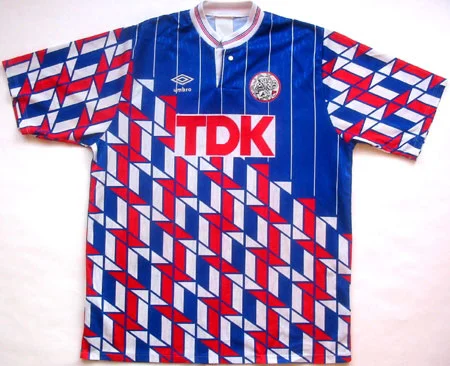 Виїзна форма амстердамського "Аякса" 1989 року. "UMBRO" знову здивували. Добре що зараз вони пішли шляхом мінімалізації. Думаю у деяких суперників в очах рябіло від такої амуніції!