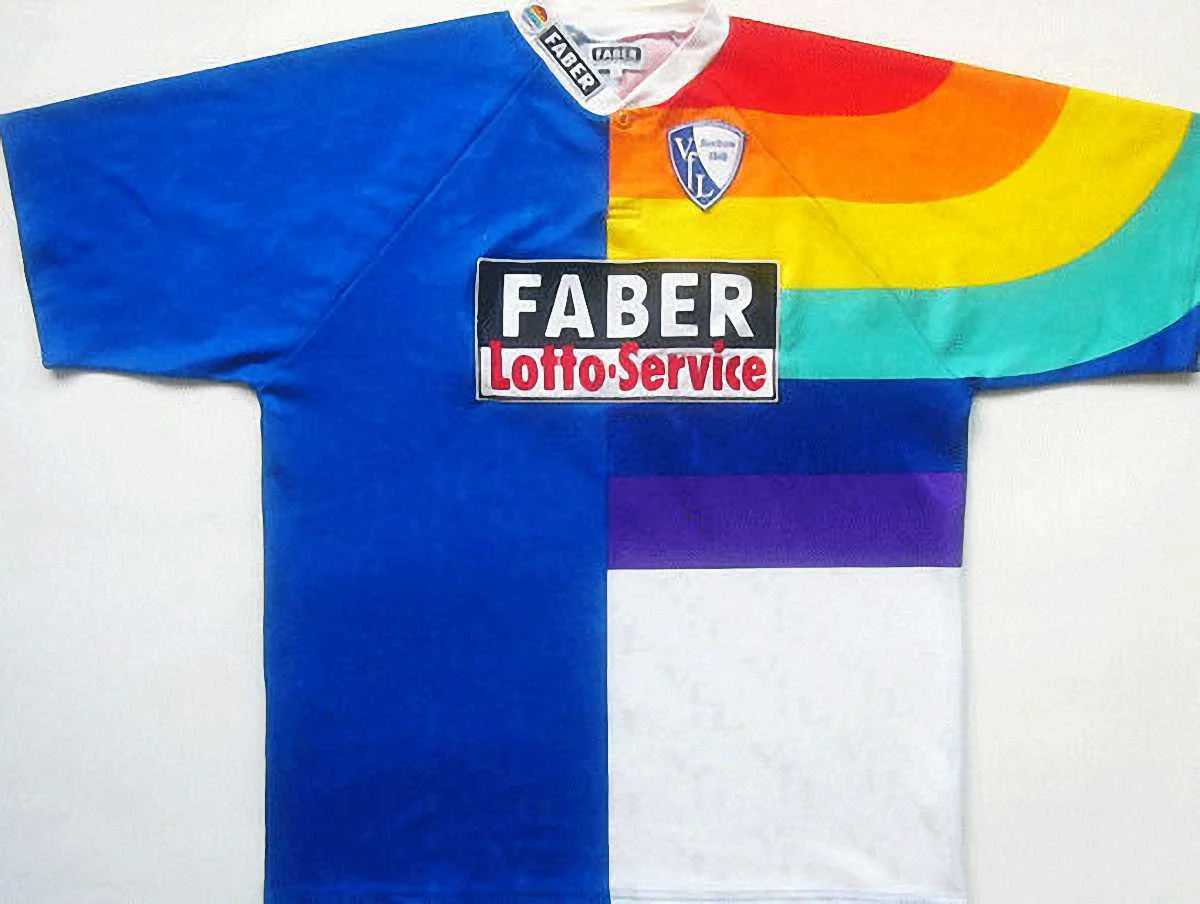 Форма німецького "Бохума" 1998 року. Творці цього дива намагалися поєднати дві футболки в одну.
