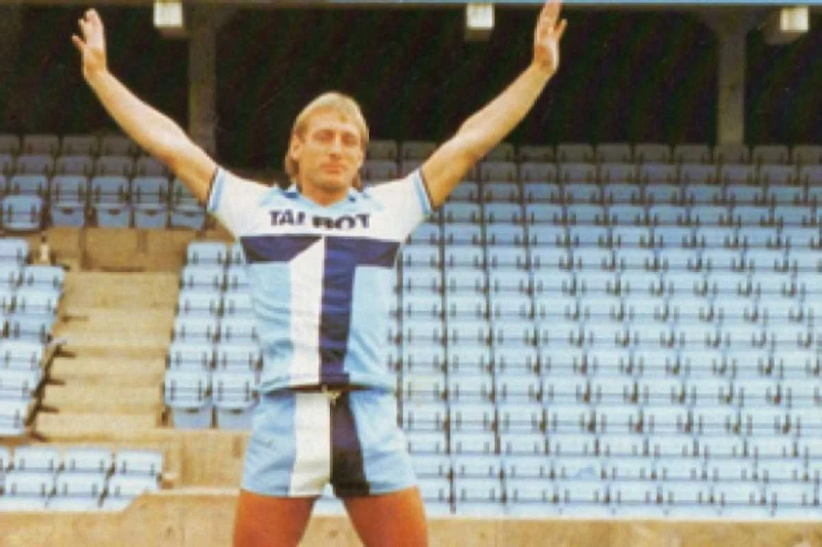 Форма клубу "Ковентрі" далекого 1981 року. Дизайнери вирішили продовжити логотип титульного спонсора ще й на шорти.