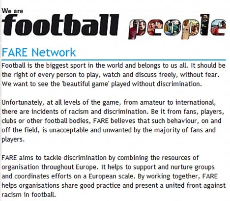 То ж де, панове, "справедлива гра"? Гітлера чи Муссоліні у вашому переліку нема, а Бандера, який сидів у концтаборі, вам заважає? Українцям не потрібна "fare play"! Лише "fair play" у грі, про яку FARE знає, що це "наймасовіший вид спорту у світі, що є складовою кожного".