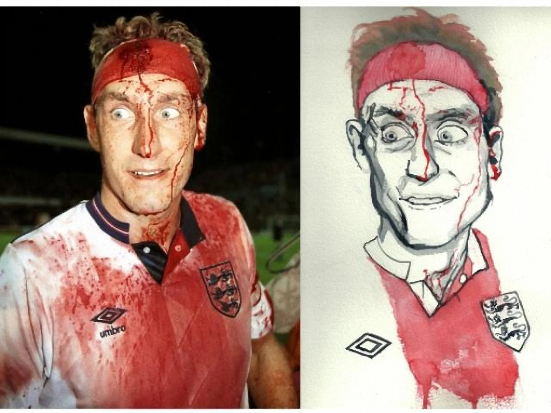 Закривавлений, проте нескорений, капітан Террі Бутчер допоміг Англії кваліфікуватись на чемпіонат світу 1990 року в Італії. Глибокий поріз на чолі та купа крові навряд чи могли стримати Террі “М'ясника”.