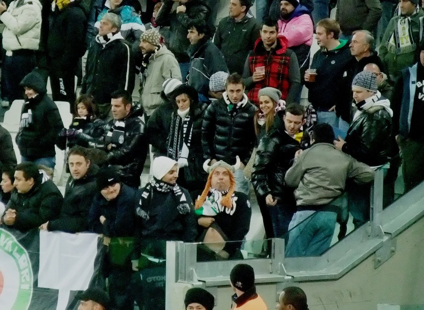 Курва Суд з ультрас бьянконері – теж поряд. Співають, у цілому, непогано, але мені, наприклад, не сподобалося, що у гімні клубу виконують лише приспів. Під час перерви той куток курви, що найближче до нас, помітив небесно-блакитны рози та почав вимагати від наших сусідів, щоб "допомогли" їх зняти… Усе це супроводжувалося побажаннями нам "доброго здоров’я" від сотень двох ультрас, а також міні-стриптиз-шоу від колоритного персонажа у рудому парику з рогами вікінга.