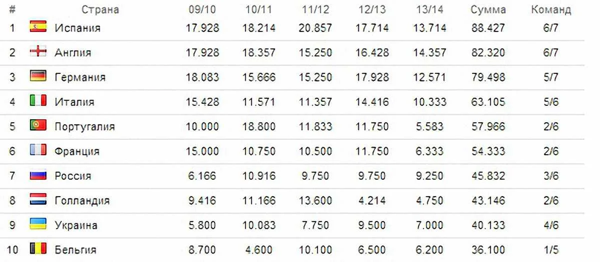 Таблиця коефіцієнтів УЄФА. Україна наближається до Нідерландів