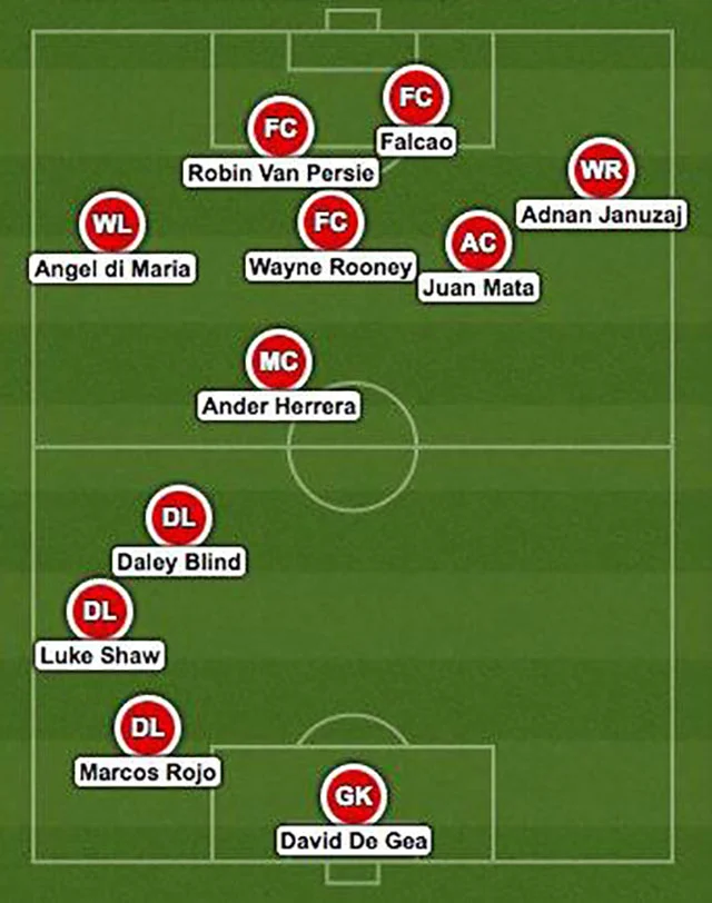 А ось в "МЮ" не все так однозначно. Звичайно, Фалькао взяли для того, аби він грав, але що робитиме Луї Ван Гал із Руні і Ван Персі - сказати важко. Так, можна розробити схему, де знайдеться місце усім трьом, а також ще п'ятьом креативщикам "МЮ", але чи вона буде дієва - тут скоріш "ні", ніж "так". Річ у тім, що "Манчестер Юнайтед" завжди був системним клубом, таким собі вдалим поєднанням успішного бізнес-проекту та елементів справжнього культу. Там чітко працювала система підбору виконавців під ігрову схему тренера (тобто, практично завжди під Алекса Фергюссона). Бездумних витрат не було ніколи. Не всі трансфери, звичайно, спрацьовували, але коли купували, то точно знали навіщо і для чого. А тут накупили, як з якогось переляку, витративши при цьому шалену суму. Причому балансу у такій закупівлі не видно абсолютно: атакувати є кому, а ось у захисті, з яким ще при Фергюссону почалися суттєві проблеми, й далі буде біда. Ось, як жартома малюють схему "МЮ" на цей сезон: