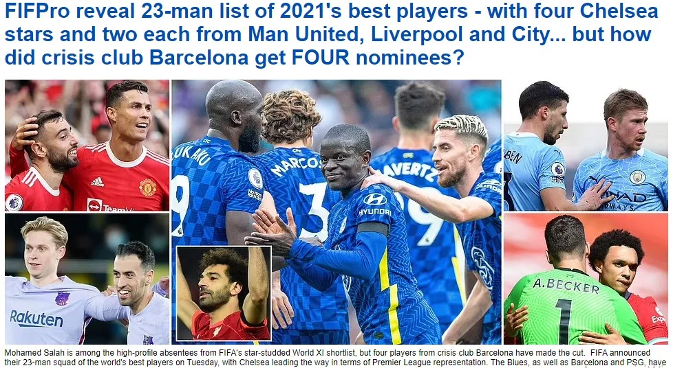 Впадає в око відсутність найкращого бомбардира та асистента АПЛ 2021/22 Мохамеда Салаха. Зате є Неймар. Дивує також поява 38-річного Дані Алвеса, який останнім часом не грав на найвищому рівні. Можуть викликати питання і Серхіо Бускетс та Френкі де Йонг із кризової Барселони. Англійські ЗМІ відверто не розуміють, чому каталонці, які не вражають ні в Іспанії, ні в єврокубках, отримали аж 4 кандидатів у збірну року. Це вдвічі більше, ніж в МЮ, Ліверпуля та Ман Сіті. Стільки ж, як у Барси, мають лише Челсі та ПСЖ.
