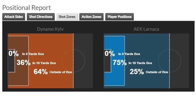 Показова статистика, звідки найчастіше били команди. У Динамо 64% від усіх ударів (набили їх на 3 більше від суперника, але тут це лише брехлива омана цифр) – дальні спроби. І лише 36% у межах штрафного. АЕК же з периметра розміром 16,5 метра пробивав у 75% випадків. А здалеку кіпріоти лупили лише у 25%. Величезний контраст, який говорить про все не лише в цій дуелі. Гості грали так, як заповідав Луческу всі попередні роки правління в Динамо. Доводьте до позицій, звідки легше забити. Не робіть з себе героїв, якими не можете стати. Всі ці дальні удари Сидорчука, Сироти і компанії від безсилля. Вони давали лише розрядку, бо нерви й так на межі.