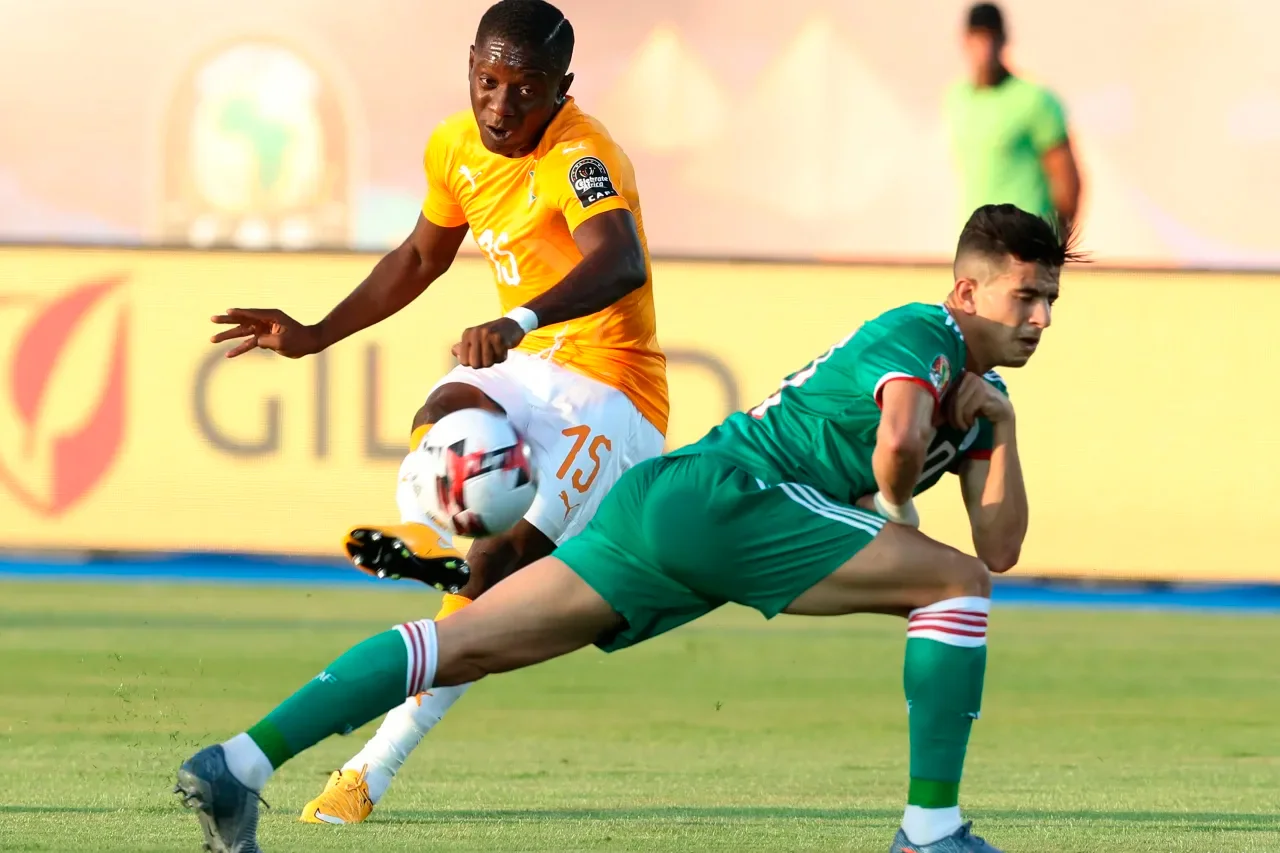 Здавалося, що Кот-д'Івуар зараз дотисне Алжир. Віра в перемогу підопічних Ібраіма Камара виросла після моменту на 18-й хвилині, коли лише вчасний підкат Манді врятував від замикання прострілу Багайоко на ближню стійку. "Лиси пустелі" не витримали такої нахабності суперника й несподівано відкрили рахунок на 21-й: Бунеджа у жорсткій боротьбі зачепився за діагональ на лівий фланг, Бенсебаїні підхопив м'яч та прострілив у штрафний, а Фегулі завершив ударом в дотик – 0:1!