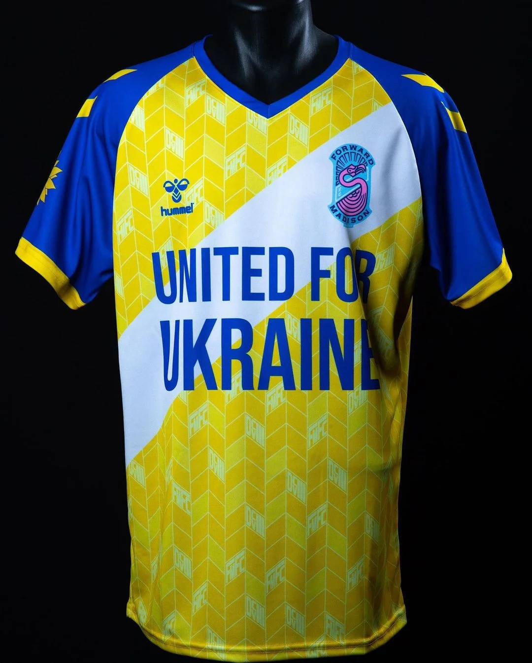 Представник третього дивізіону США створив абсолютно унікальний комплект форми у блакитно-жовтих кольорах із соняхами і гаслом "Об'єднані заради України". Вартість футболки на офіційному сайті – від 76 до 90 доларів. Усі виручені кошти Форвард Медісон передасть у фонд ЮНІСЕФ для допомоги українцям.