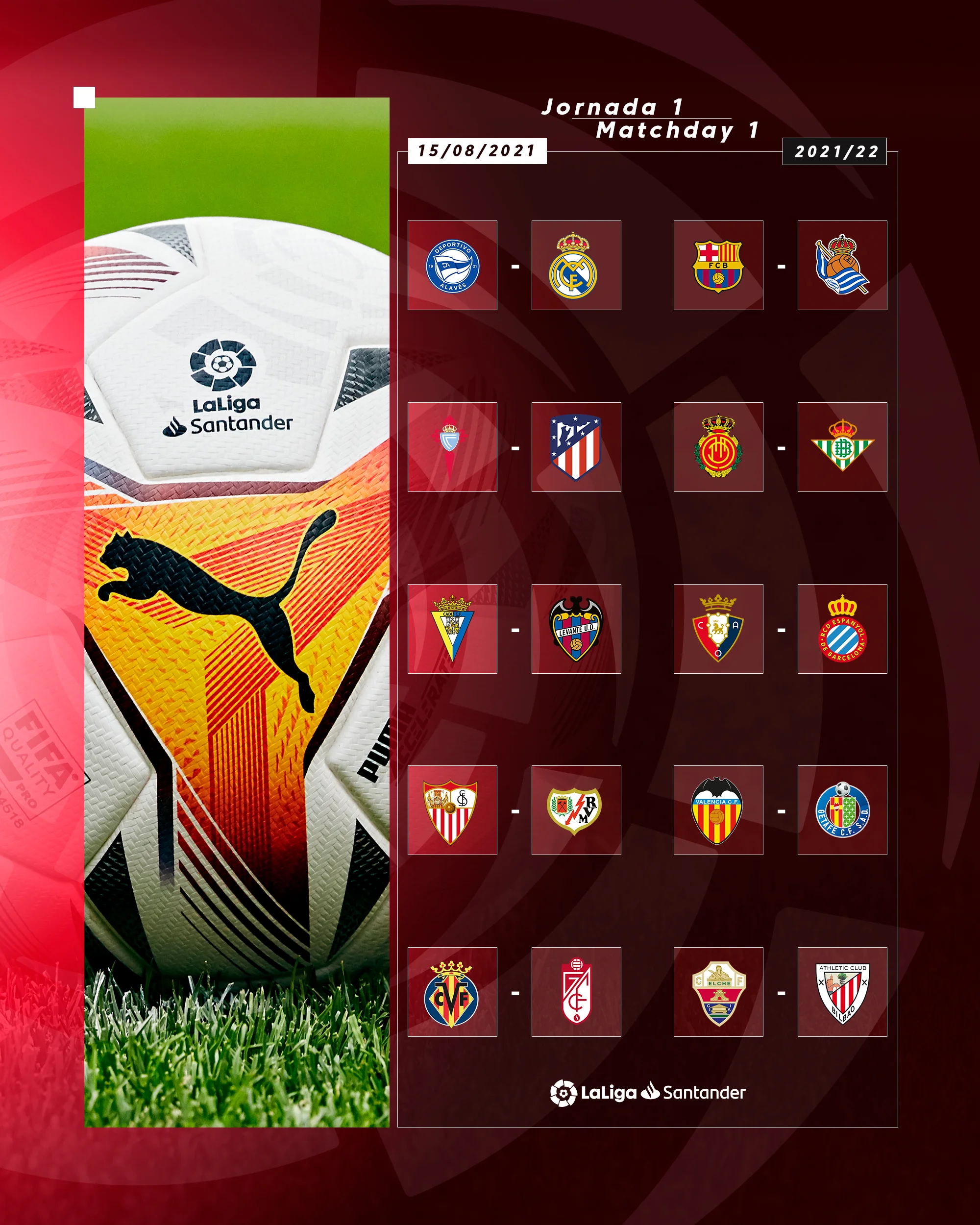 У першому турі (15 серпня) Реал поїде в гості до Алавеса, за який виступає екс-зірка Карпат Лукас Перес. Барселона прийматиме Реал Сосьєдад, а мадридський Атлетіко розпочне захист чемпіонського титулу з гостьового матчу проти Сельти. Повний календар опублікований на офіційному сайті Ла Ліги.