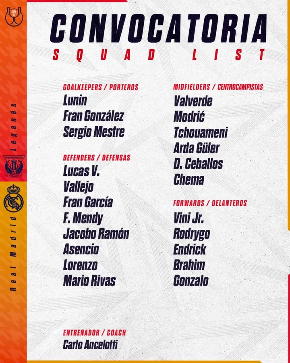 Головний тренер Реала Карло Анчелотті визначився з гравцями, які зіграють проти Леганеса у Кубку Іспанії.