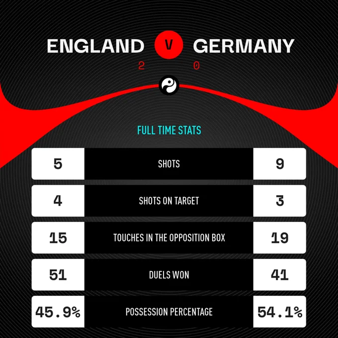Відіграти два м'ячі збірна Німеччини нинішнього призову виявилася неспроможною. Отже, трудова перемога англійців, що вивела "Трьох левів" до 1/4 фіналу чемпіонату Європи. Там британці зустрінуться із переможцем пари Швеція – Україна.