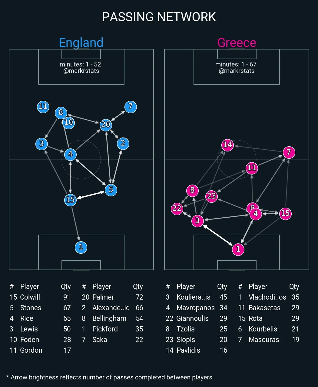 Карта ігрових зв'язків у матчі Англія – Греція