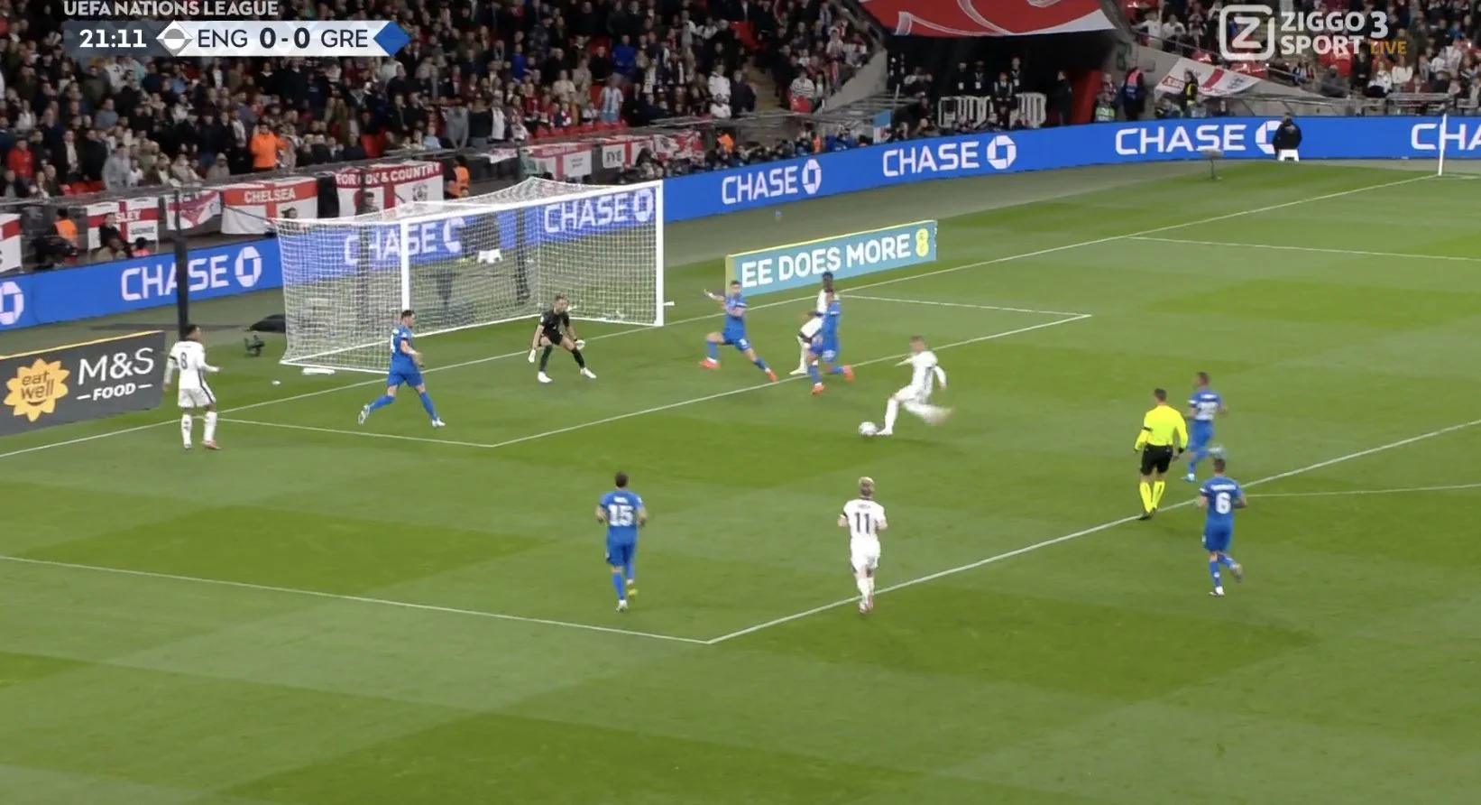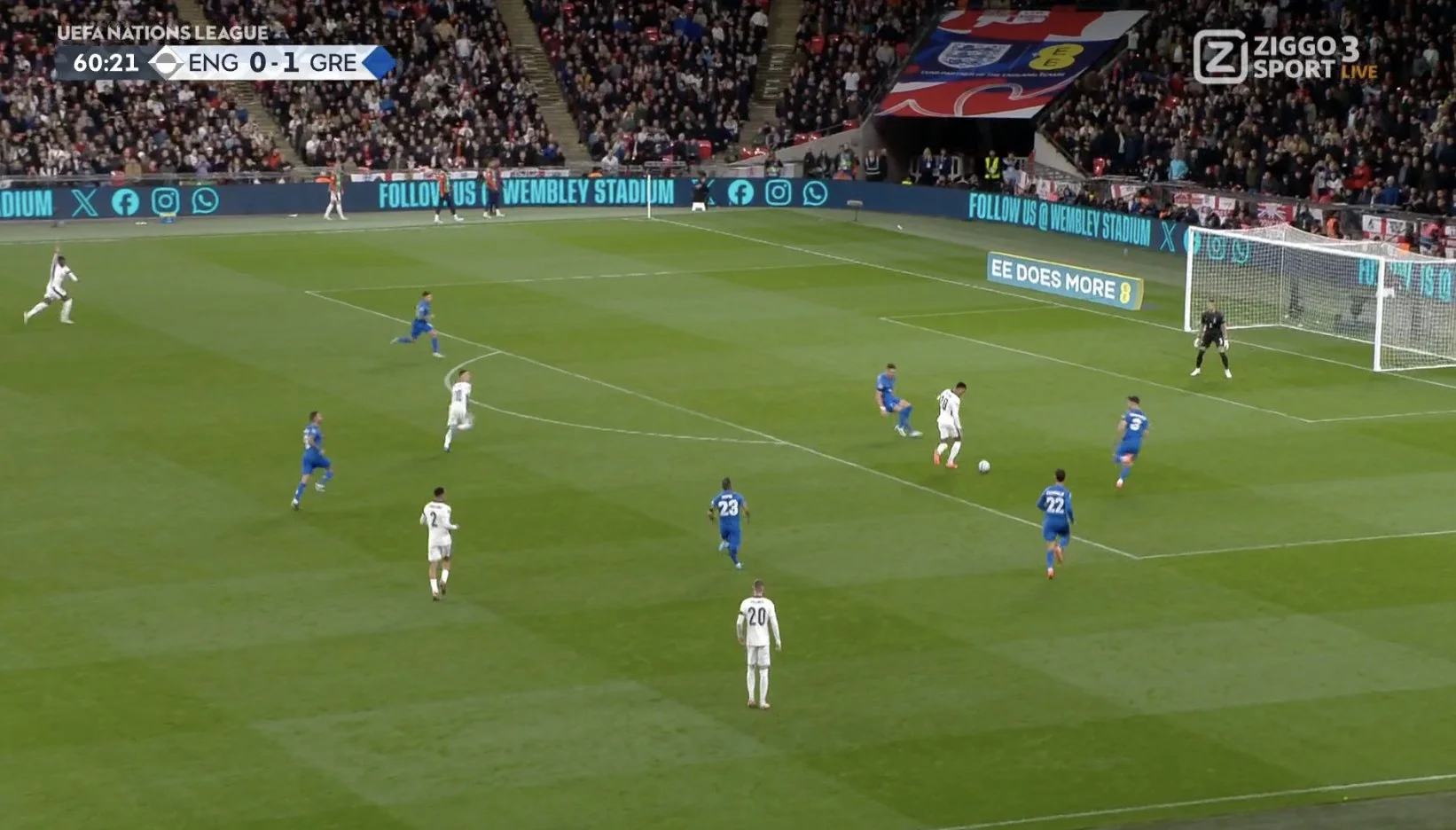 Невдалий кутовий британців на 76-й хвилині завершився виходом Цоліса віч-на-віч, однак грек не влучив у ворота при спробі перекинути Пікфорда. Та й знову за господарів заступився офсайд.