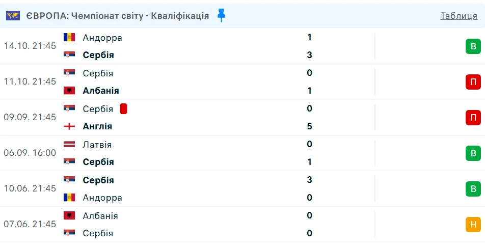 Результати Сербії у відборі на ЧС-2026