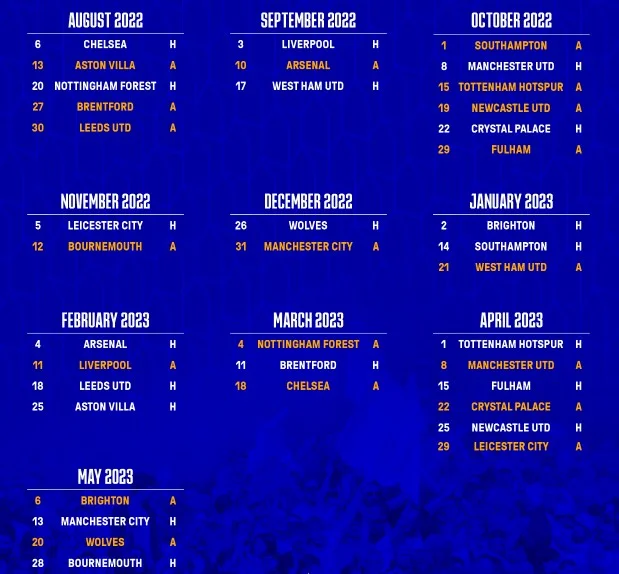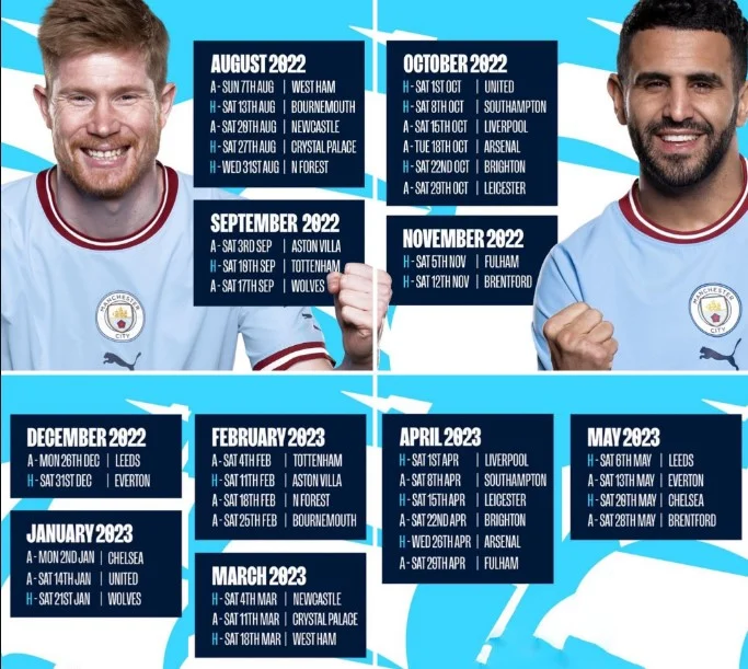 Також керівництво англійського футболу оприлюднило календар усіх 380 поєдинків прийдешньої кампанії, з яким можна ознайомитись на офіційному сайті. Її відкриють Крістал Пелас та Арсенал матчем 5 серпня. Поєдинки останнього туру заплановані на 28 травня 2023 року.