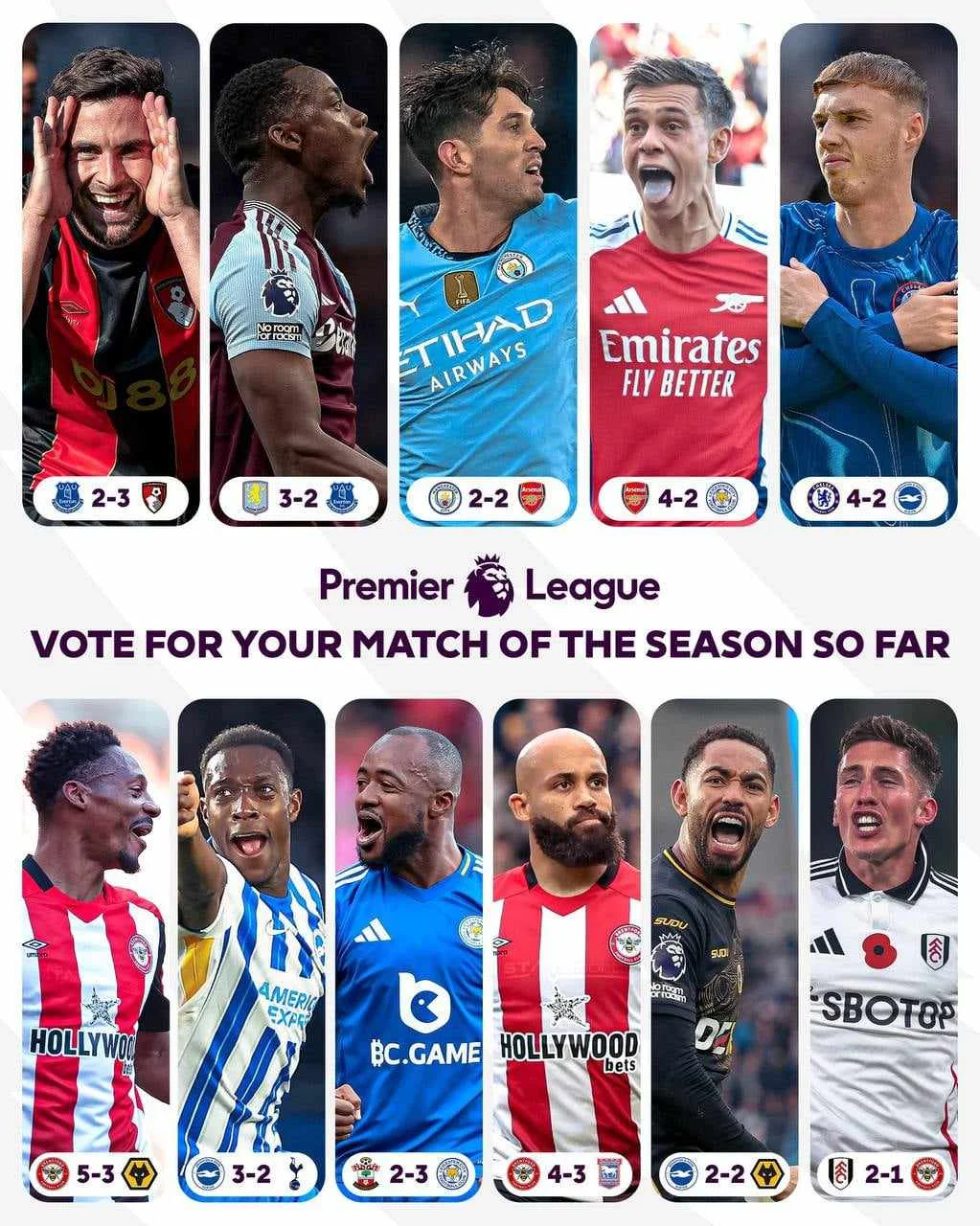 На вибір запропоновано 11 матчів – битви лідерів, шалені камбеки, перестрілка з 8 голами та багато іншого. Цікаво, що команди українців фігурують у 8 з 11 поєдинків цього рейтинга. Брентфорд Єгоря Ярмолюка тричі, Евертон Віталія Миколенка та Арсенал Олександра Зінченка по 2 рази, Челсі Михайла Мудрика та Борнмут Іллі Забарного по одному.